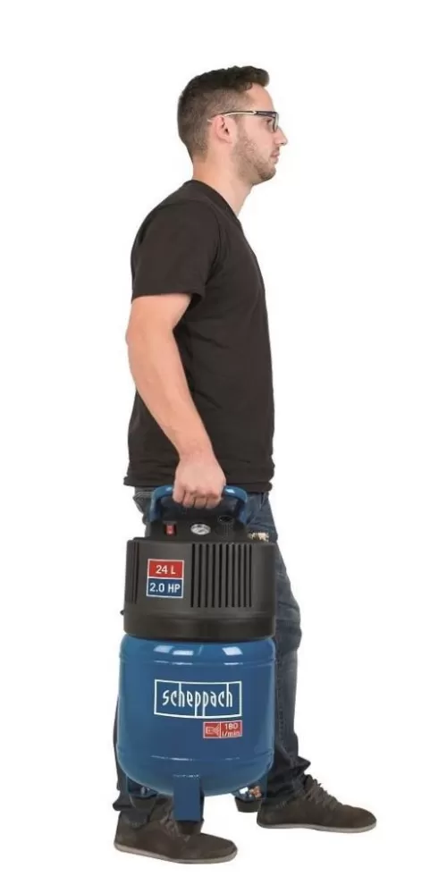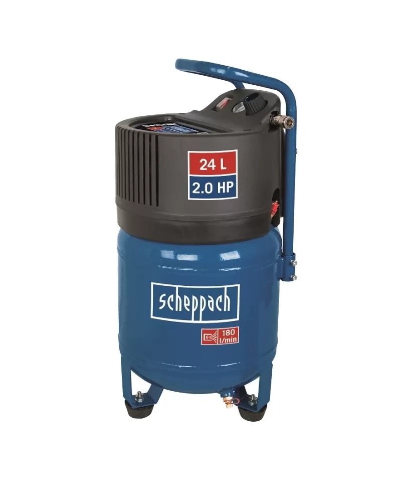 Vertikální kompresor Scheppach HC 24 V je prostorově velmi úsporný stroj.