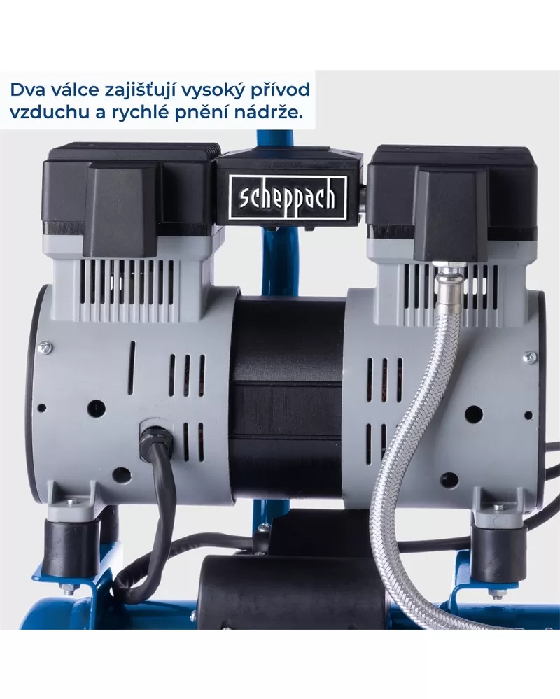 Ultra tichý bezolejový dvouválcový kompresor 6l Scheppach HC 08 Si