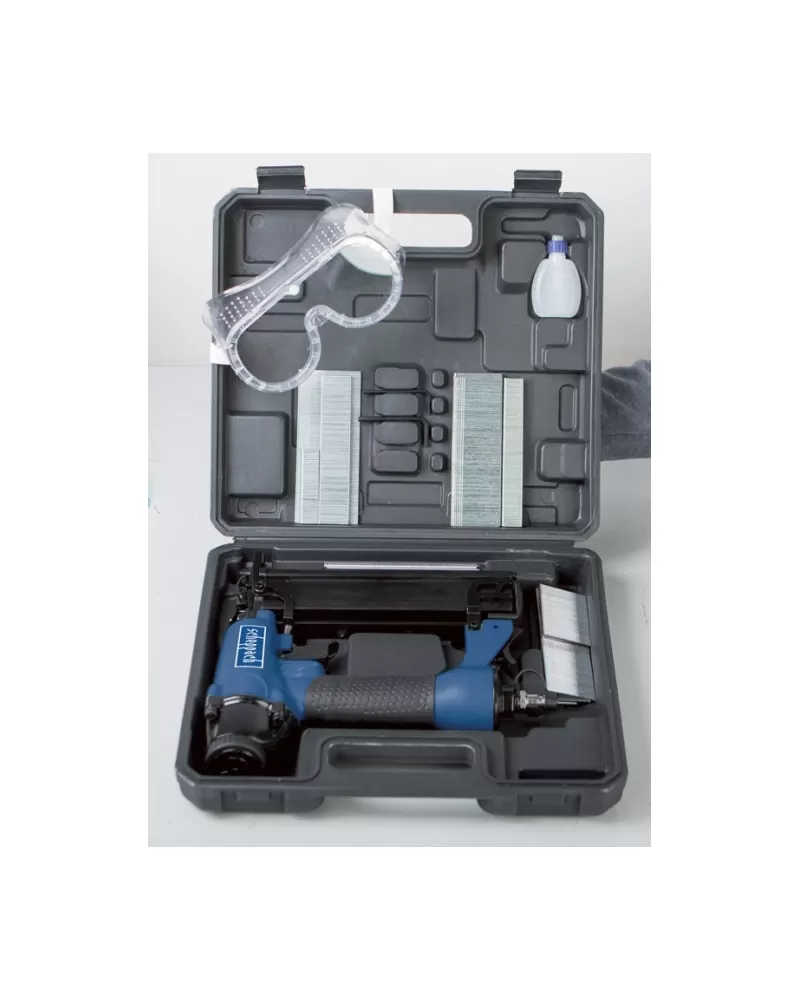 Pneumatická sponkovačka/hřebíčkovačka 2v1 Scheppach Sada sponkovačky/hřebíčkovačky a příslušenství v praktickém kufru  Skvělá pro spojování… Celý popis