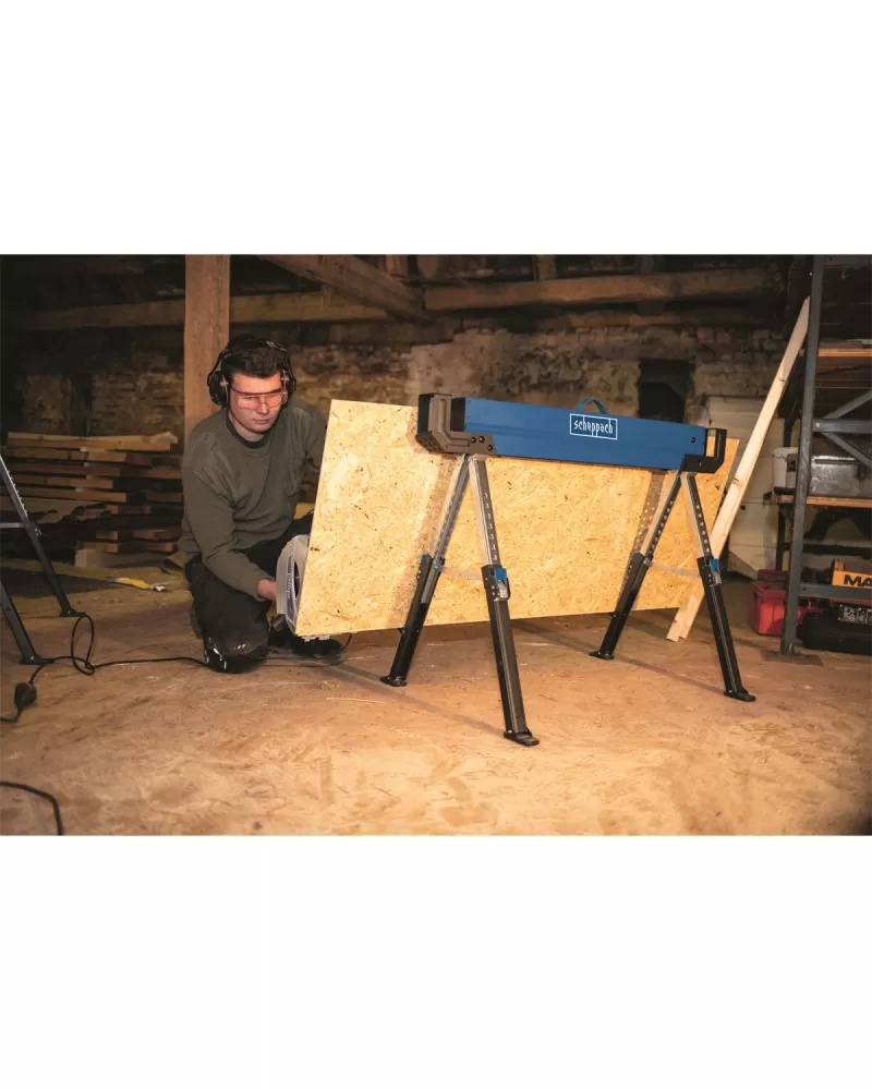 • Pokud potřebujete rozšířit pracovní plochu nebo vytvořit provizorní pracovní stůl na zahradě, v garáži nebo na stavbě, stavební koza Scheppach MWB 600 je na to ideální pomocník.