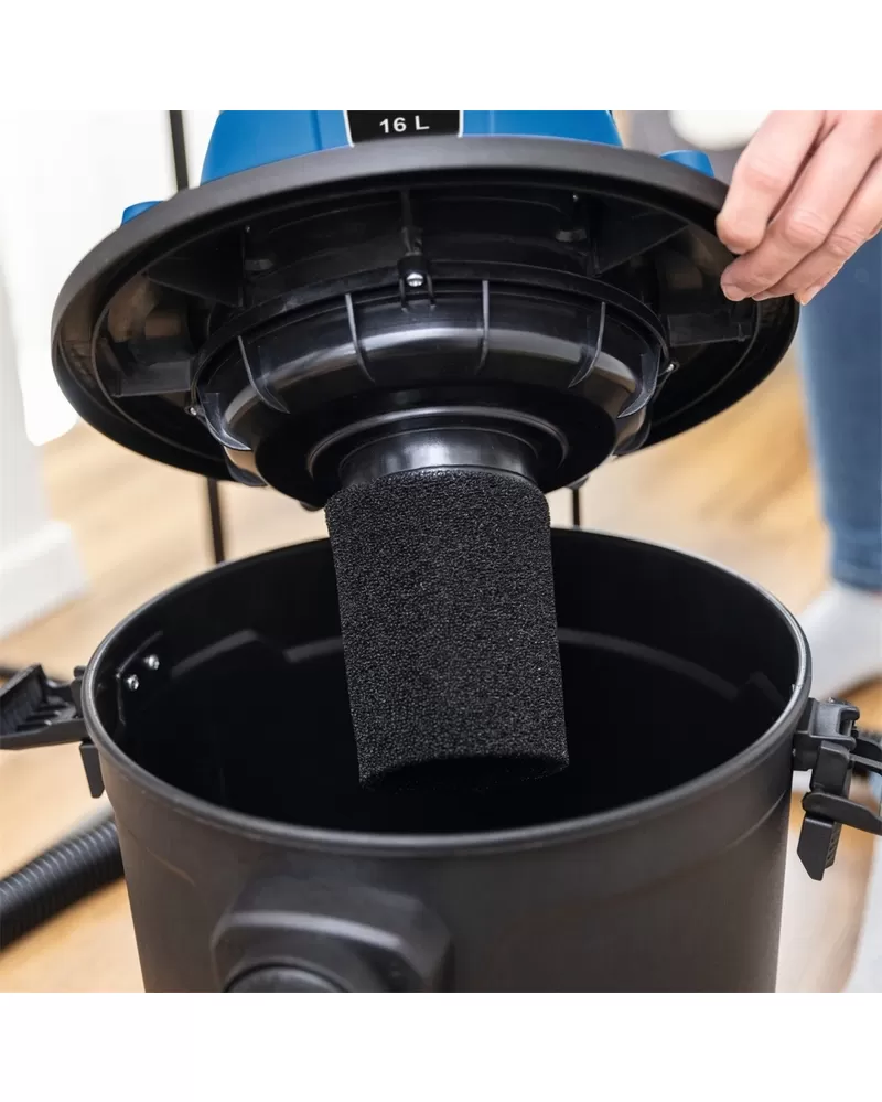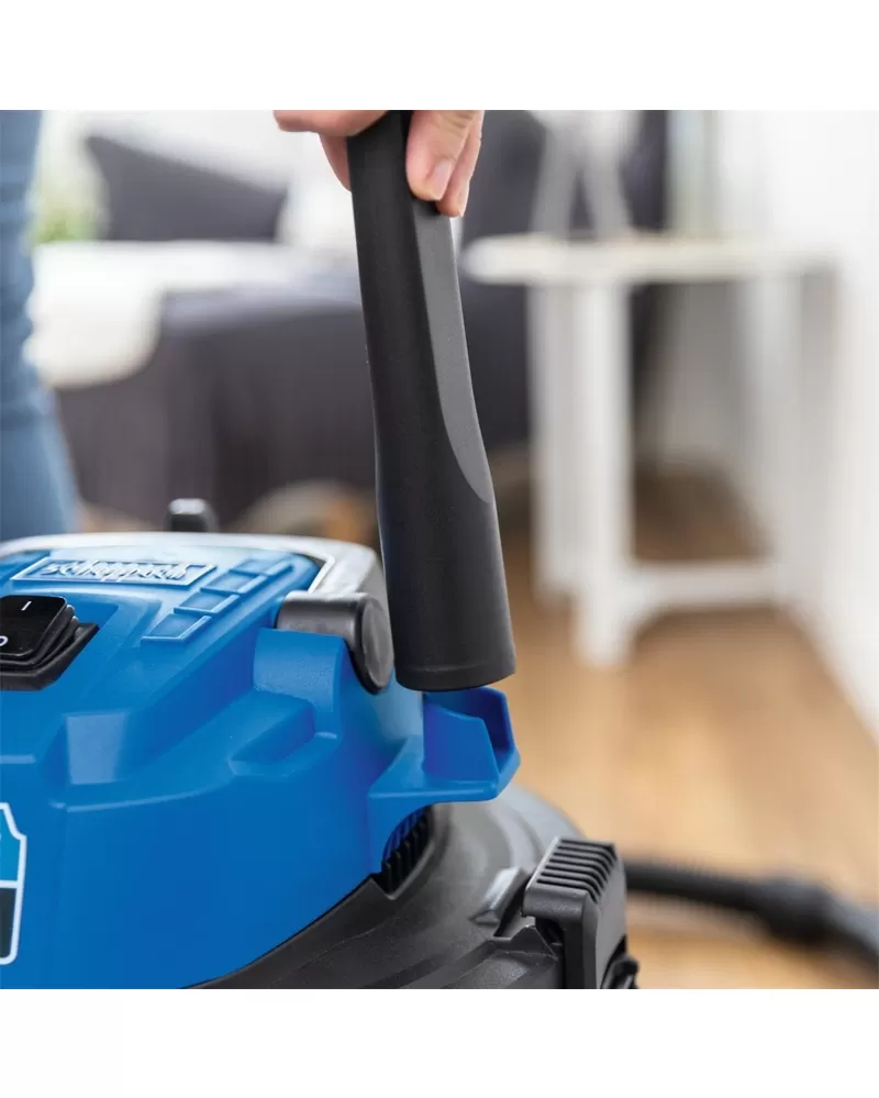 • Scheppach VC 16 je kompaktní a výkonný pomocník, který zvládne jak suché nečistoty, tak i rozlitou vodu. Tento univerzální vysavač s výkonem 1 200 W a sacím tlakem 20 kPa si hravě poradí s úklidem dílny, garáže i domácnosti. Díky funkci foukání jej navíc využijete i pro odstranění nečistot z pracovního stolu, vyfoukávání prachu z těžko přístupných míst nebo pro rychlé sušení menších ploch.