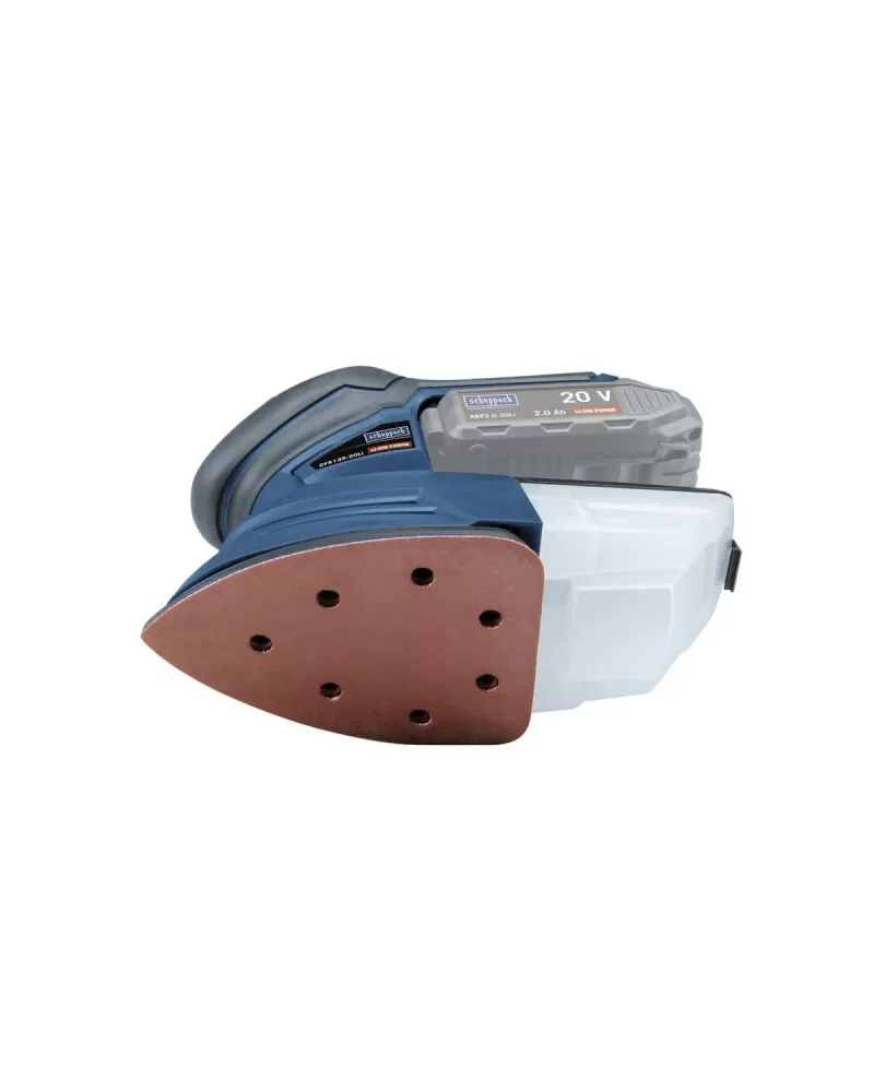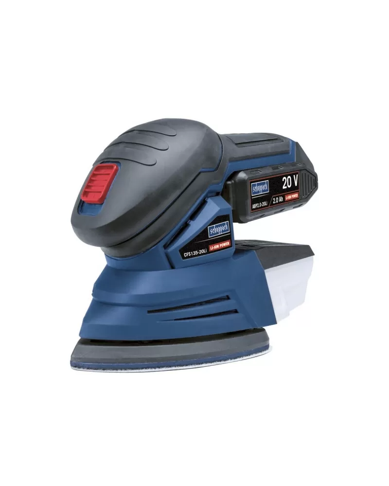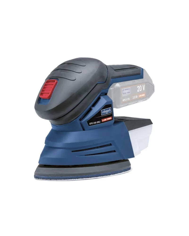 • Scheppach CFS135-20Li je moderní, lehká a kompaktní akumulátorová vibrační bruska, která se ideálně hodí na broušení různých povrchů, jemné dokončovací práce nebo odstraňování starých nátěrů