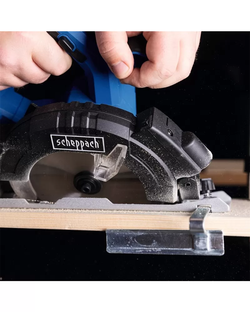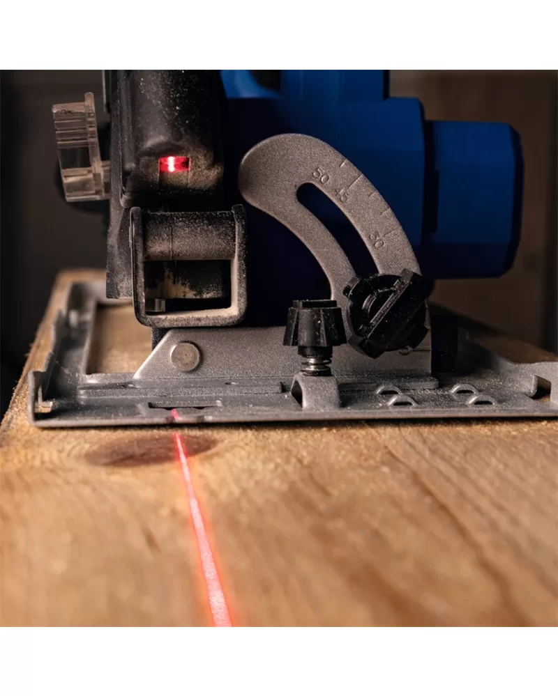 • Díky výkonnému motoru, vysokým otáčkám, pevné kovové základně ze slitiny hliníku a kvalitnímu řeznému kotouči 165 mm s 24 zuby z tvrdokovu, jsou řezy přesné a čisté. K nastavení hloubky a úhlu řezu nepotřebujete nářadí a obě operace indikují snadno čitelné stupnice integrované na stroji.