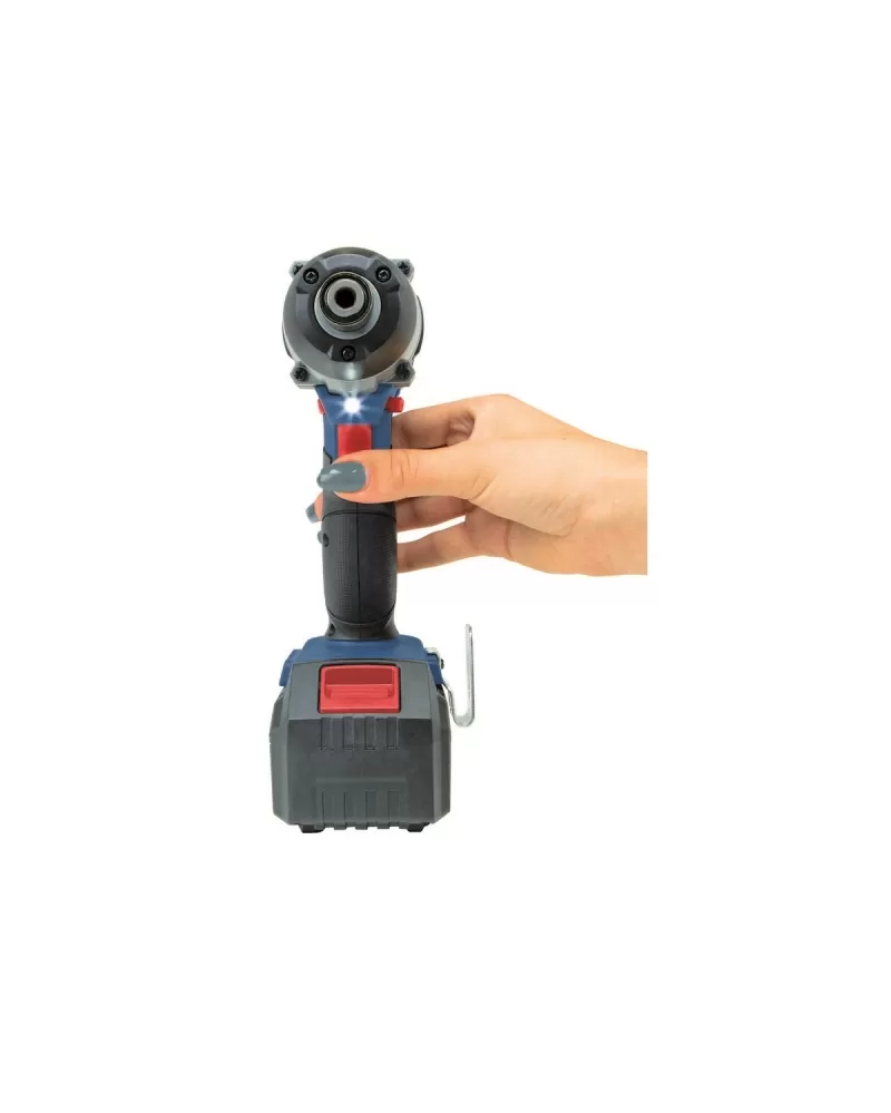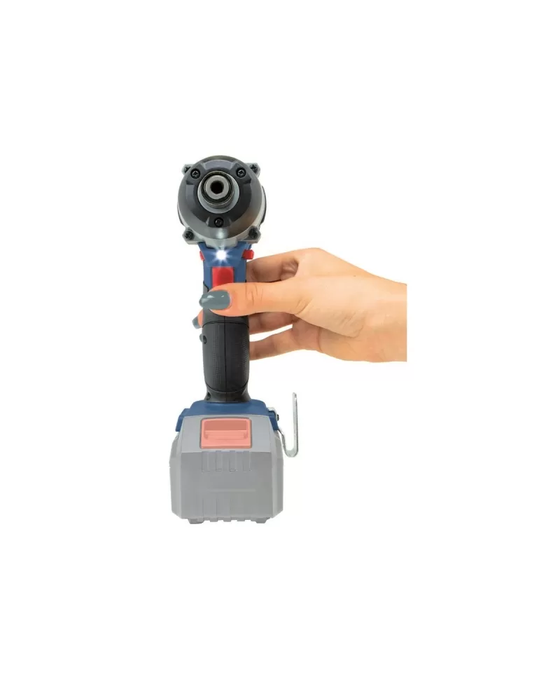 • Stroj je vybavený LED osvětlením pracovního prostoru, ergonomickou rukojetí s protiskluzovými zónami, rychloupínacím sklíčidlem 1/4", elektronickou regulací rychlosti, levým a pravým chodem, odnímatelným ocelovým klipem na opasek a celokovovou převodovkou