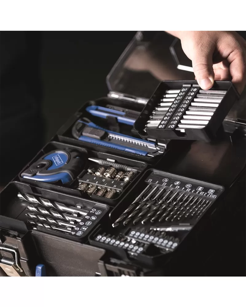 S praktickou sadou Scheppach C-DTB74/1-X máte vždy po ruce vše potřebné pro běžné vrtací práce.