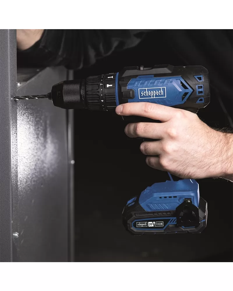 • Vrtačka je vybavena moderním uhlíkovým motorem zajišťující plynulý chod, výkonnou dvourychlostní převodovkou a příklepovým mechanismem, což umožňuje výběr ideální konfigurace rychlosti a síly pro různé aplikace. Stroj je plně kompatibilní se všemi akumulátory a nabíječkami řady Scheppach IXES 20V, které nabízí maximální flexibilitu a pohodlí bez kabelů.