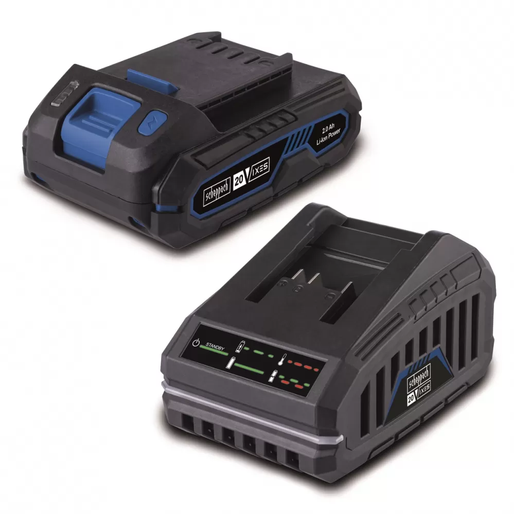 Set 20V IXES nabíječky 2,4A a lithium-iontové baterie 2,0Ah Scheppach SBSK2.0