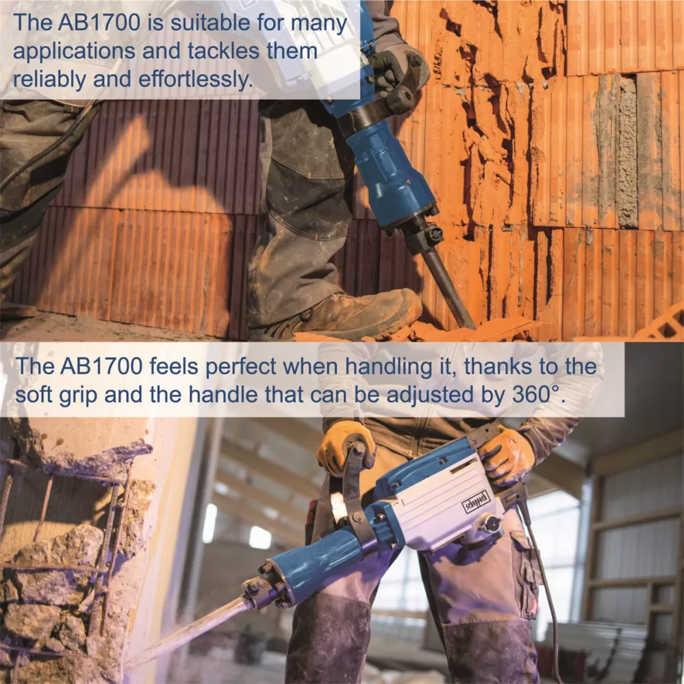 Bourací kladivo Scheppach AB 1700 je z nové generace strojů, které se vyznačují vysokým výkonem, dlouhou životností, jednoduchou a bytelnou konstrukcí a vynikající cenou.