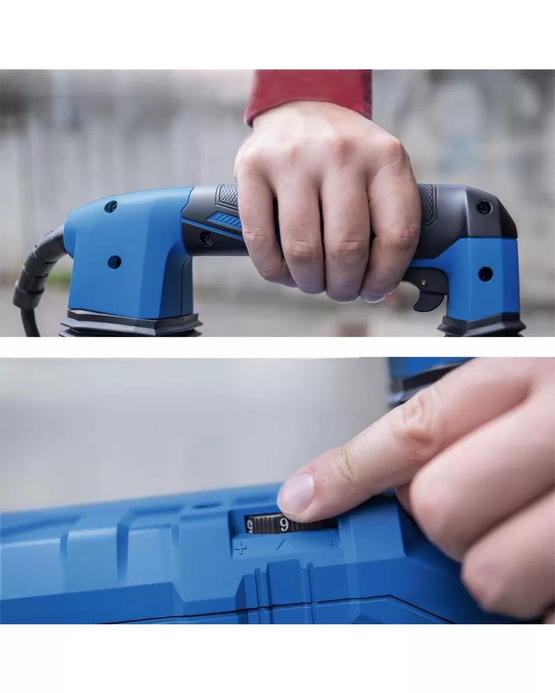• Silný motor o příkonu 1700 W má zvýšenou ochranu proti přehřátí. Speciální antivibrační technologie spolu s měkčeným povrchem madla výrazně snižuje celkové vibrace. Přídavná pracovní rukojeť lze nastavit v rozsahu 360° bez použití nářadí pro ergonomickou a neunavující práci. K dispozici je 6 stupňů nastavení frekvence příklepu (200-2100 úder./min) v závislosti na typu materiálu. Praktická aretace chodu spínače umožňuje nepřetržitý chod. Upínání SDS MAX pak zajišťuje snadnou a rychlou výměnu nástroje.