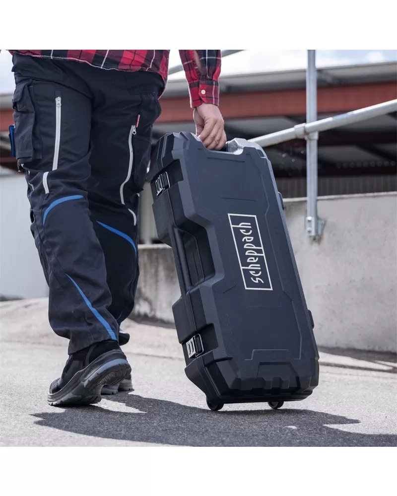 • Přístroj je vybaven 4 m dlouhým přívodním kabelem a dodává se v robustním kufru s kolečky. Kladivo je v základní výbavě dodáváno s bohatým příslušenstvím.