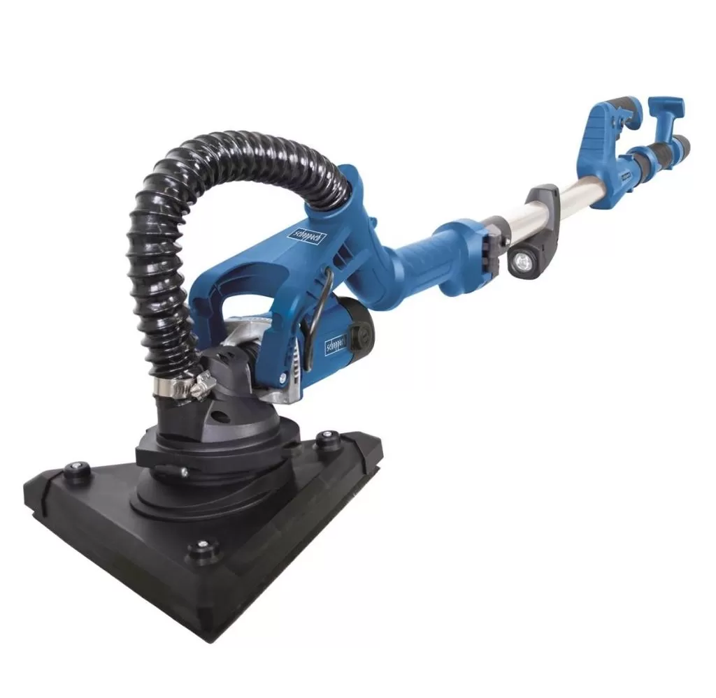 Díky kvalitní brusce Scheppach DS 930 s dlouhým krkem a velkou brusnou plochou (tzv. žirafa) nyní můžete mnohem rychleji dokončit broušení sádrokartonových či polystyrénových desek, přípravu povrchu před lakováním nebo leštěním, odstranění zaschlého lepidla z podlahy a další podobné práce na větších plochách.