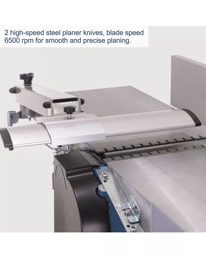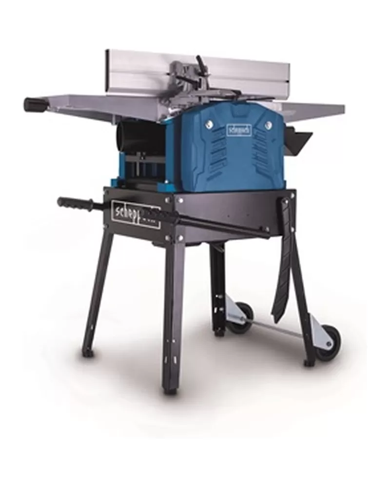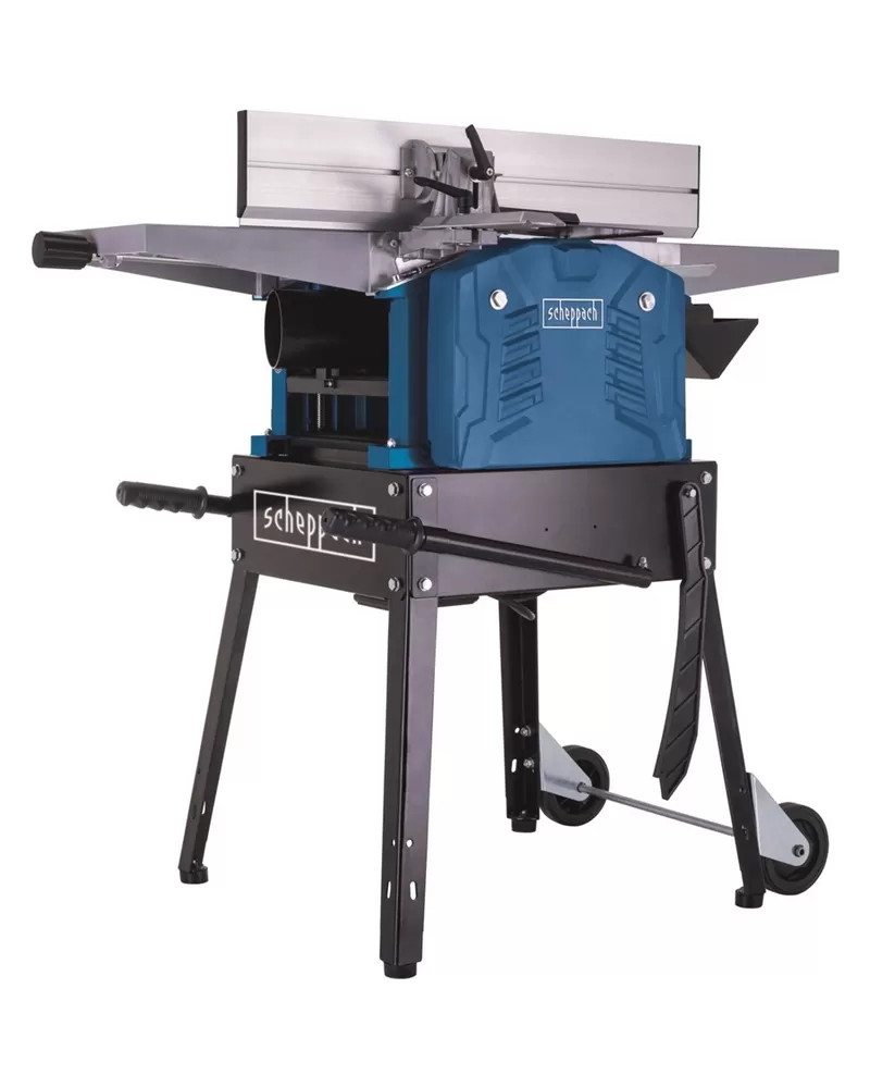 • Scheppach HMS 1500 je kombinovaný stroj, určený pro náročné kutily nebo do dílen, vyžadujících profesionální výsledky. Stroj umožňuje jak klasické hoblování dřeva, tak disponuje i funkcí protahu. Přestavba z hoblovky na protahovačku je snadná a není k tomu potřeba žádné nářadí. Kompaktní design minimalizuje prostorové nároky v dílně. Přesun stroje usnadňuje standardně dodávaná základna s koly a velká výsuvná madla. Robustní konstrukce zvládá bez problémů práci s hranoly a prkny z měkkého i tvrdého dřeva o šířce až 260 mm. Silný bezúdržbový indukční motor 2200 W spolu se dvěma ocelovými noži rotujícími rychlostí 6500 ot./min. se starají o velmi čistý a přesný řez, což v praxi znamená ještě jemnější opracování plochy. Nože jdou velice snadno vyměnit a celé ovládání stroje je velmi jednoduché a komfortní. Nastavení výšky protahu (max. 160 mm) se děje snadno pomocí otočné kliky. Na přesnosti opracování se podílí i velký hoblovací stůl z odolné, tlakově lité hliníkové slitiny a přesná masivní hoblovací zarážka s možností nastavení od 90° do 135°. Stůl protahu je potom vyroben z otěruvzdorné šedé litiny. Posuvná tyč a nástavec na odsávání pilin je ve standardní výbavě, zrovna tak jako bezpečnostní pojistky i spínač chránící obsluhu před nechtěným spuštěním stroje. .