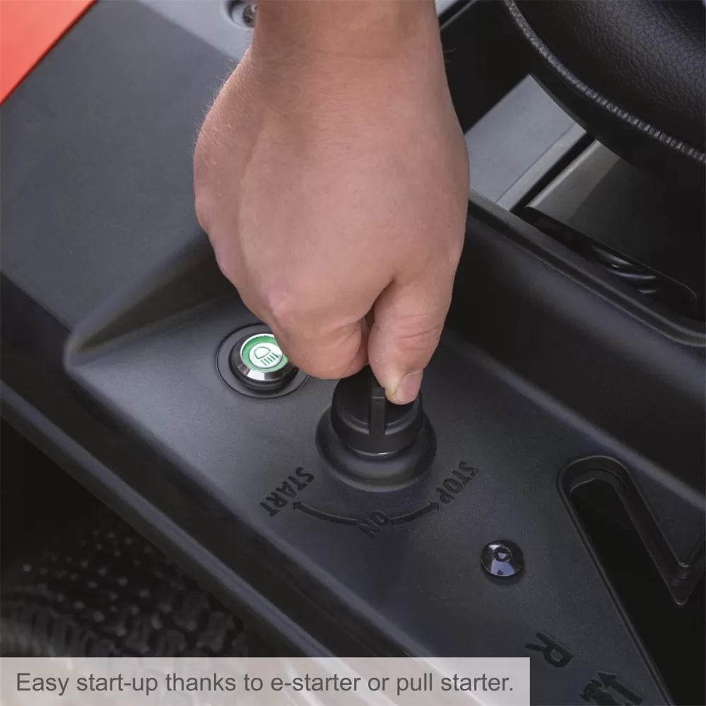 • Startování je snadné a pohodlné díky hybridnímu systému: zvolit můžete buď elektrický start, nebo klasické ruční zatažení za lanko